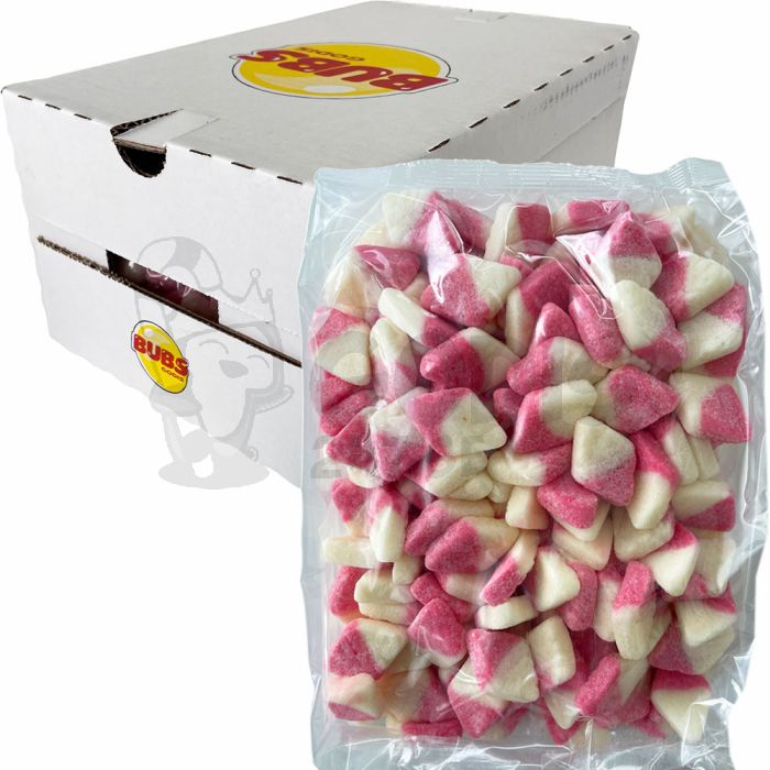 Denna 2,6 kg förpackning är fylld med små, rombformade godisbitar som kombinerar den lena smaken av vanilj med den söta friskheten av jordgubb. Perfekt balans mellan smak och textur – dessa minigodisar är både mjuka och oemotståndliga!